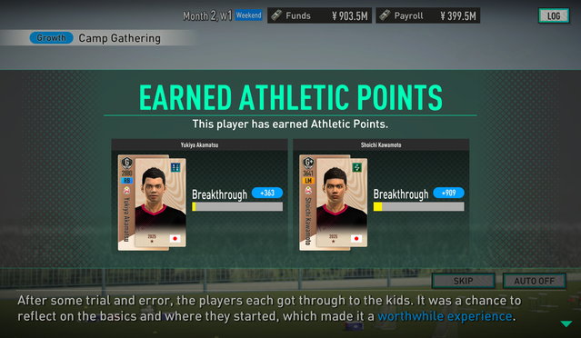 なお、覚醒Ptは試合成績だけでなくシーズン末の個人表彰(得点王・MVPなど)でも獲得できる。シーズン終盤も選手を積極的に出場させよう。